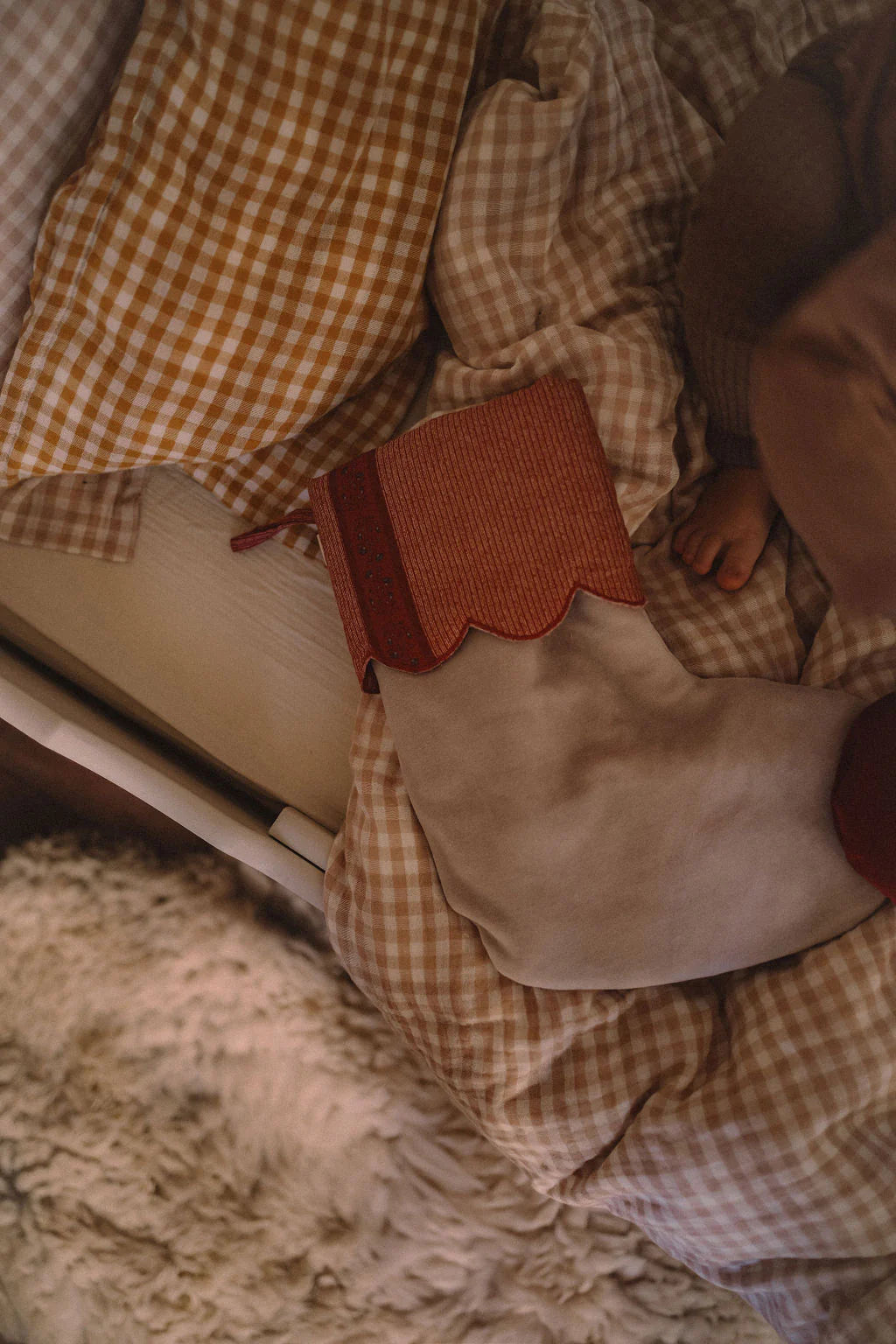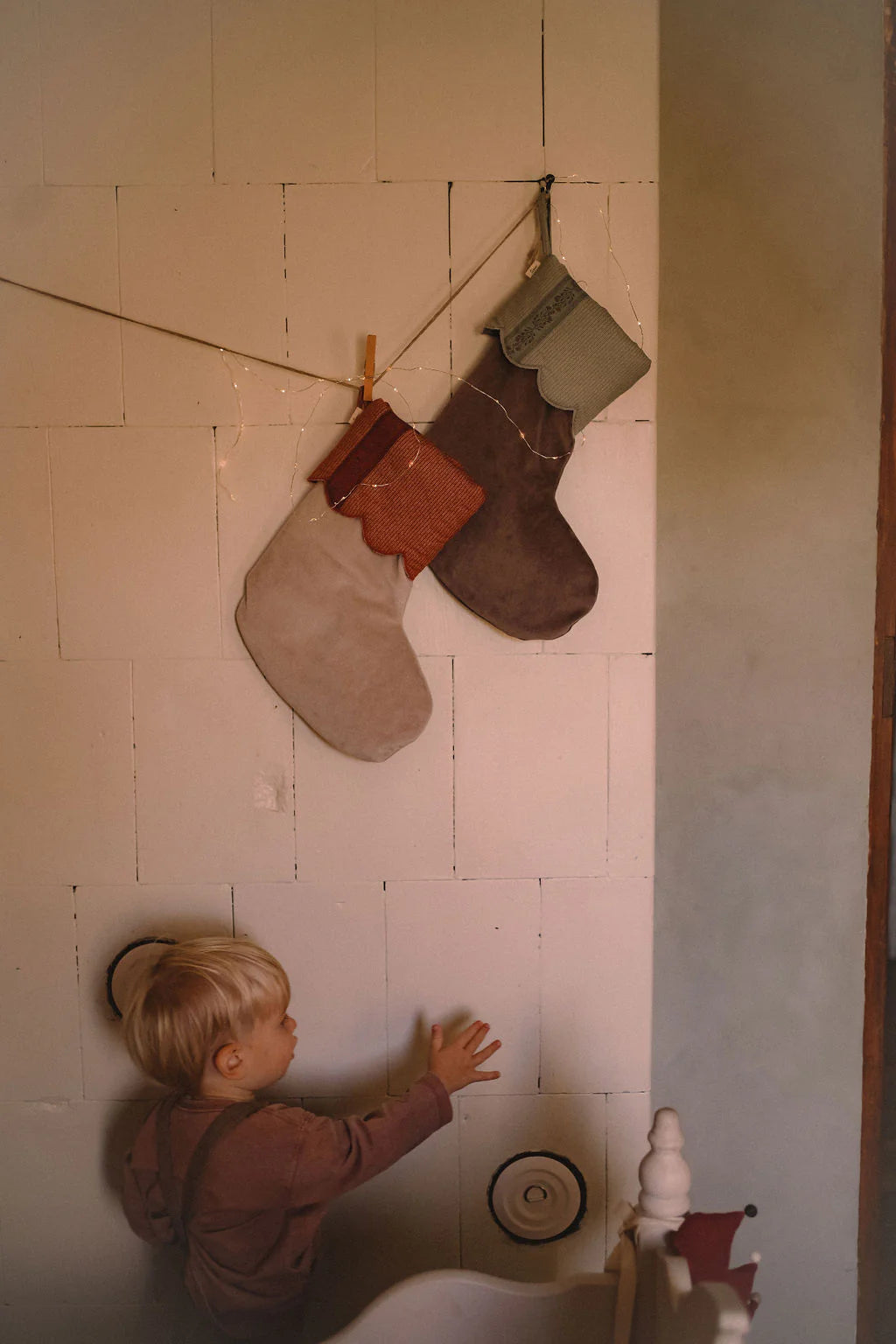 TISU jõulusokk on käsitsi valmistatud pehmest sametist ja Jaapani puuvillast.