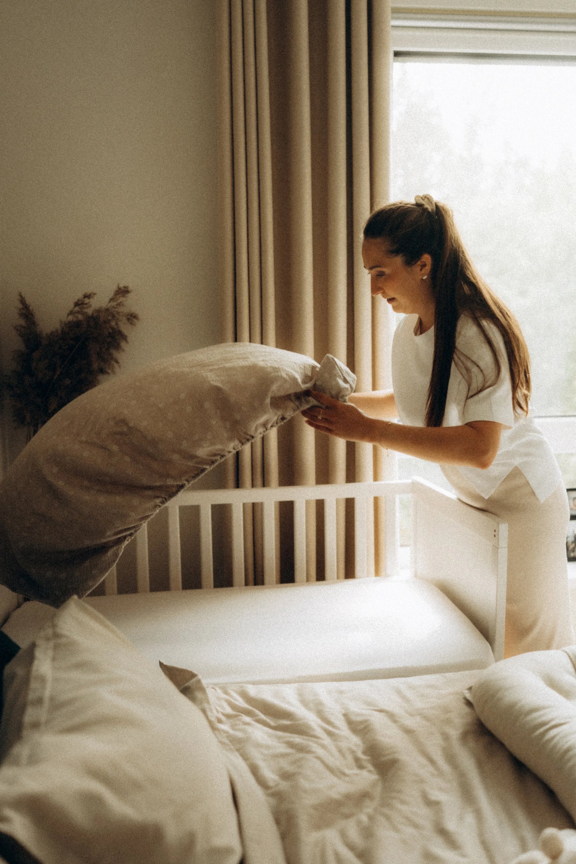 Valmistatud ülipehmest GOTS-sertifitseeritud orgaanilisest musliinkangast, mis ei vaja triikimist. Kummipael hoiab lina kindlalt paigal ka siis, kui beebi palju siputab.