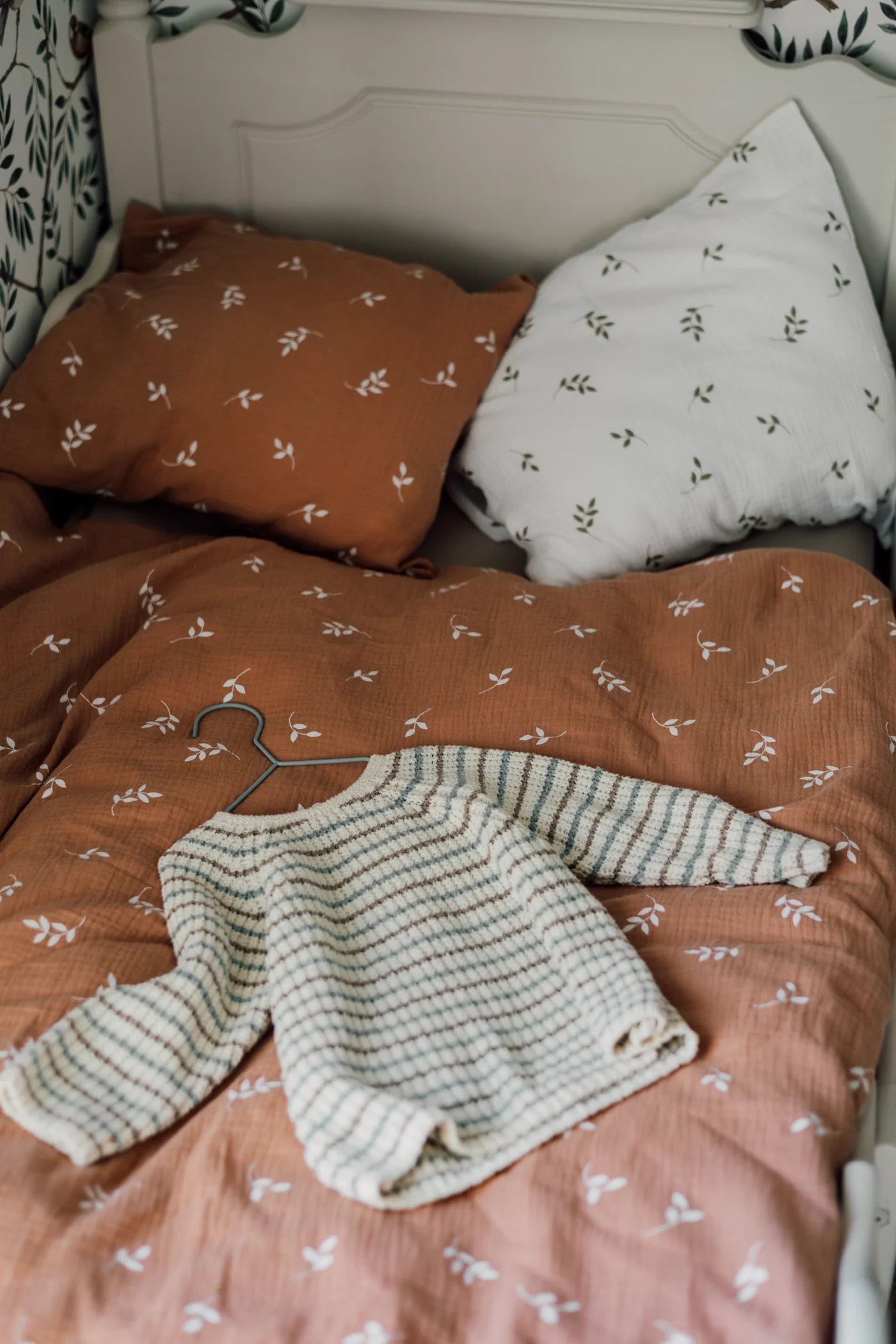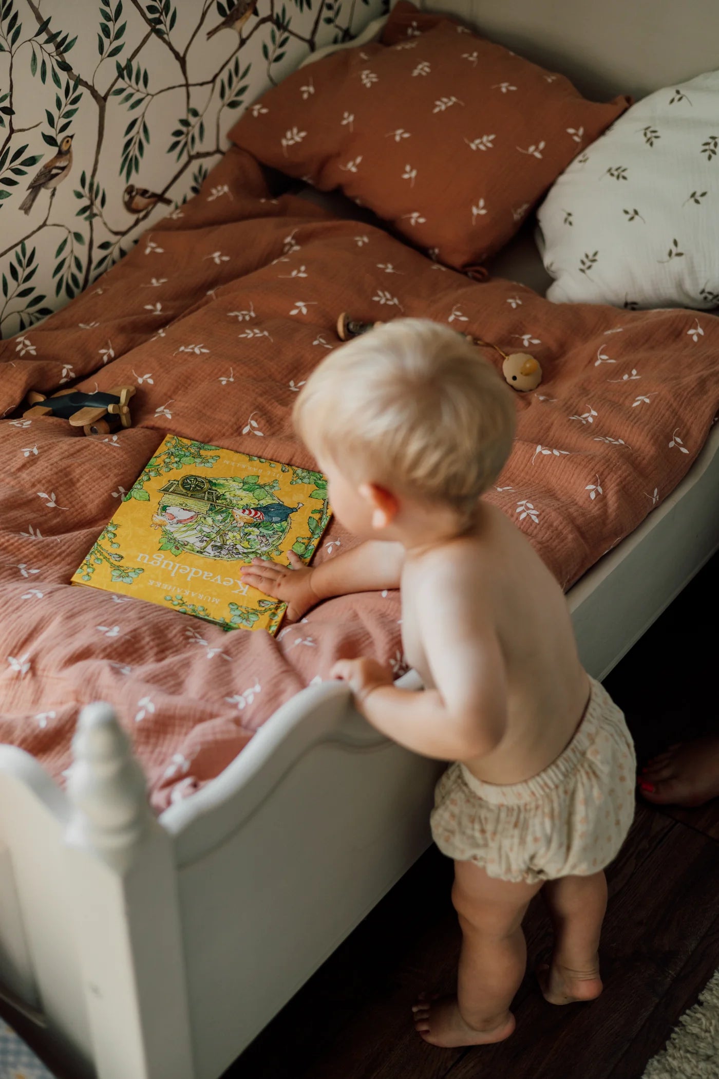 Valmistatud õrnalt kortsulisest musliinkangast, mis on mugav ja praktiline – pärast pesu ja kuivamist ei vaja see triikimist.