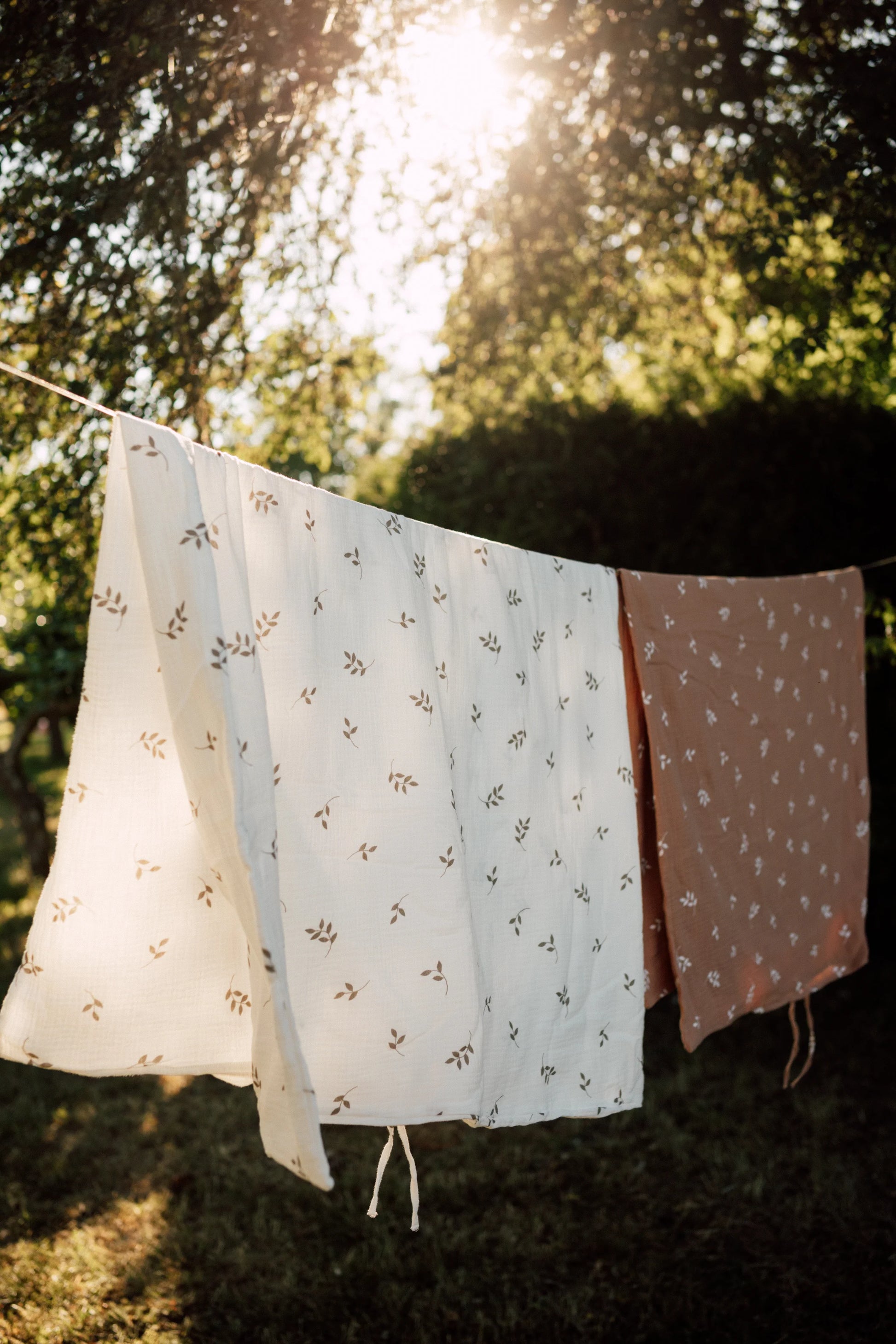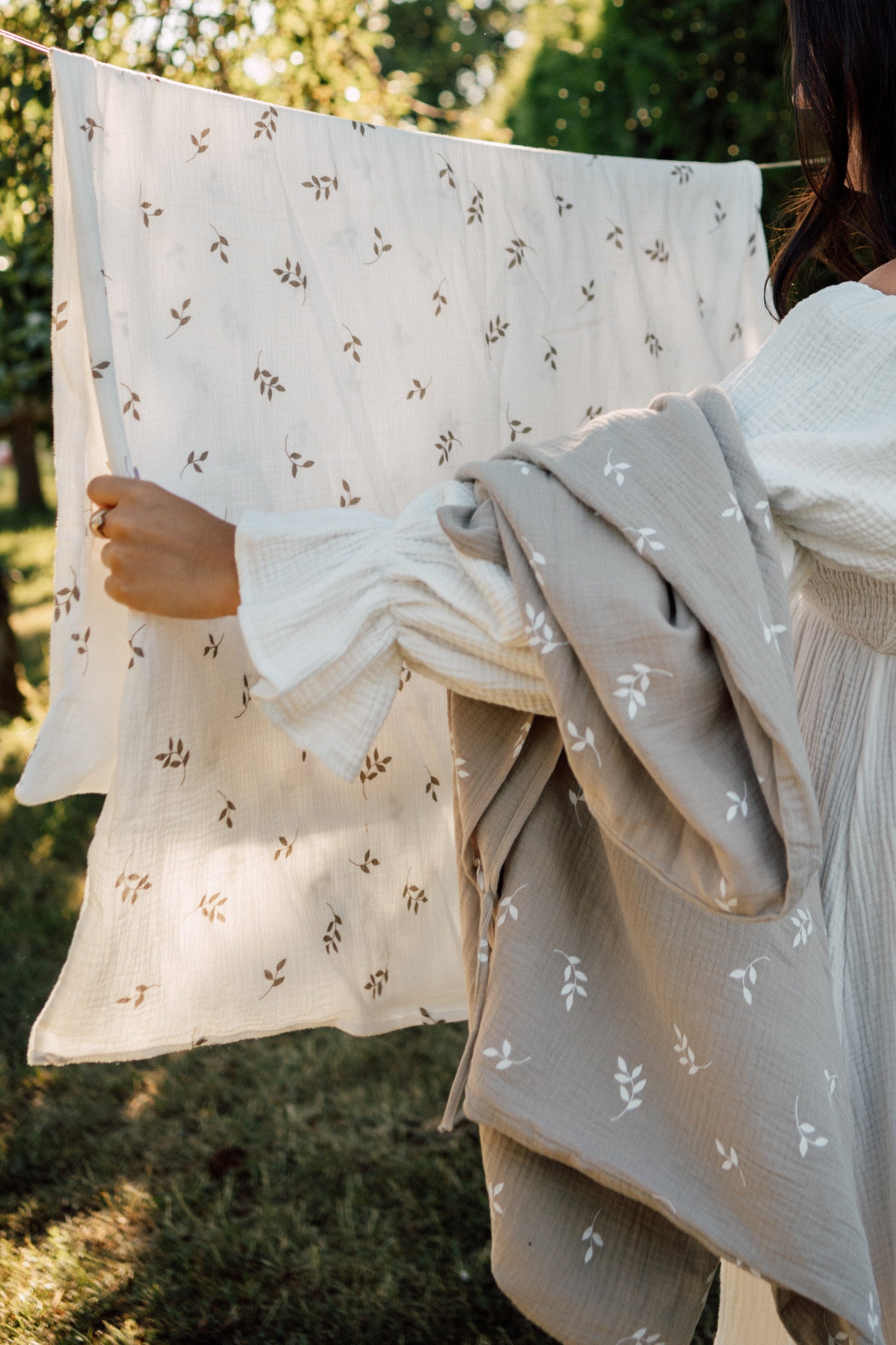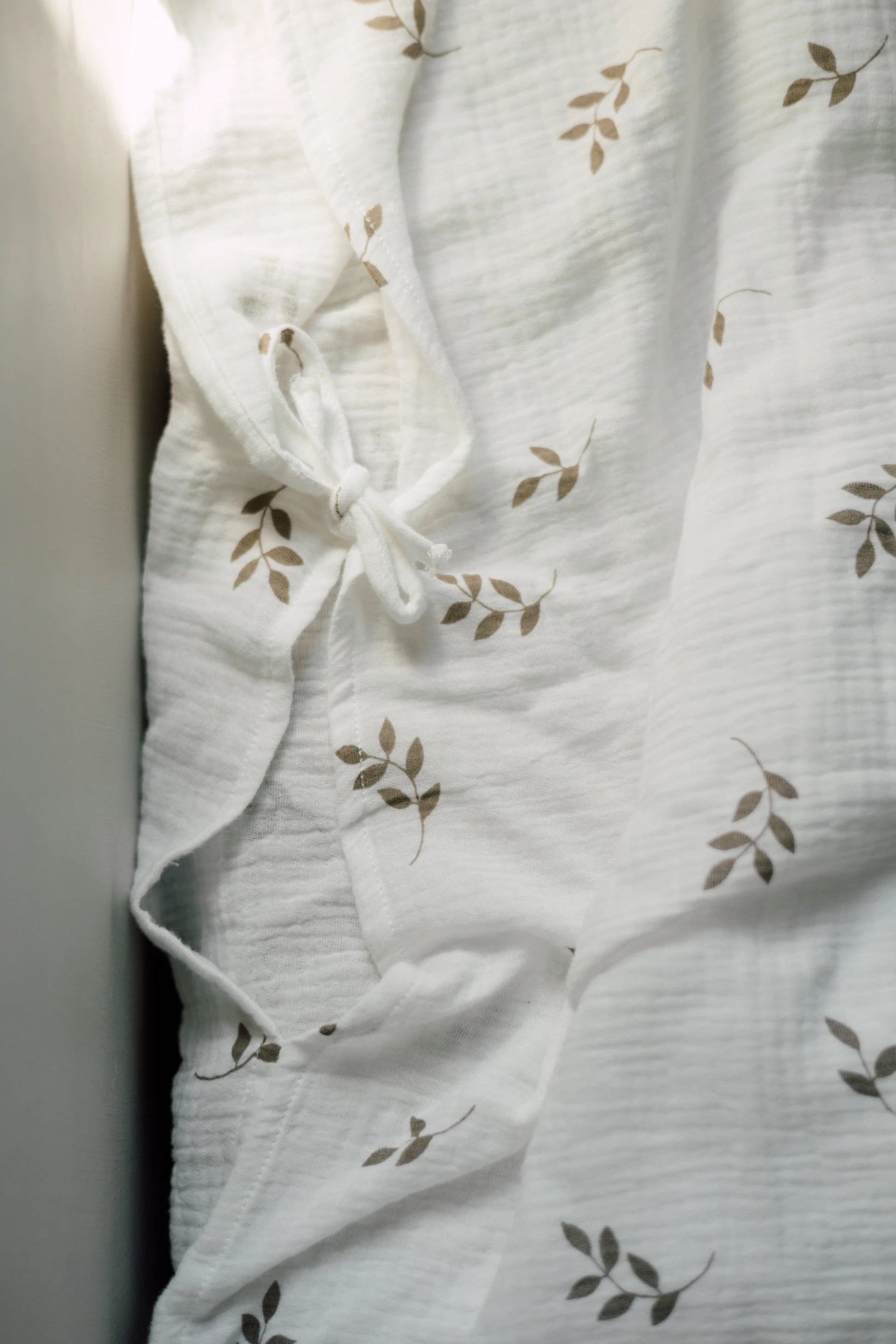 Valmistatud õrnalt kortsulisest musliinkangast, mis on mugav ja praktiline – pärast pesu ja kuivamist ei vaja see triikimist.